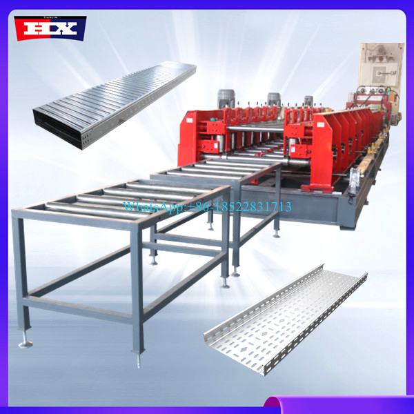 Cable tray machine is for producing cable trays with pre-punched holes.The width of the cable trays is various.