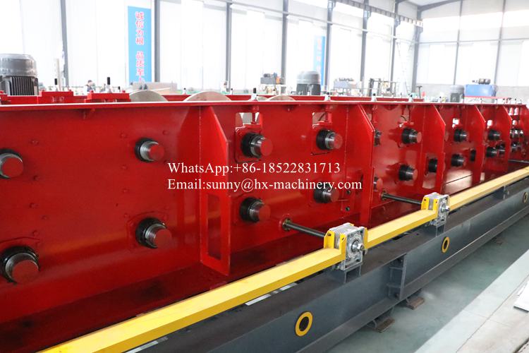 | 6 | Roll forming part | 1. Shaft diameter φ65mm 2. Shaft material 45# steel 3. Forming pass number 32 4. Main motor power 7.5Kw 5. Automatic opening and closing motor 1.5KW 5. Roller material Cr12 6. Roller hardness HRC58-62 |