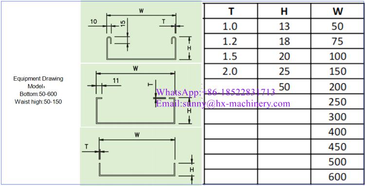Cable tray making machine Drawing Model:Bottom:50-600 Waist high:60-200 technical details :