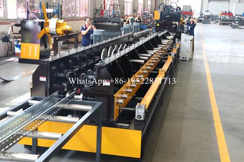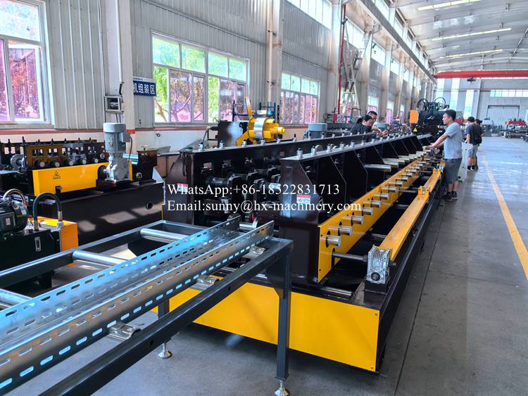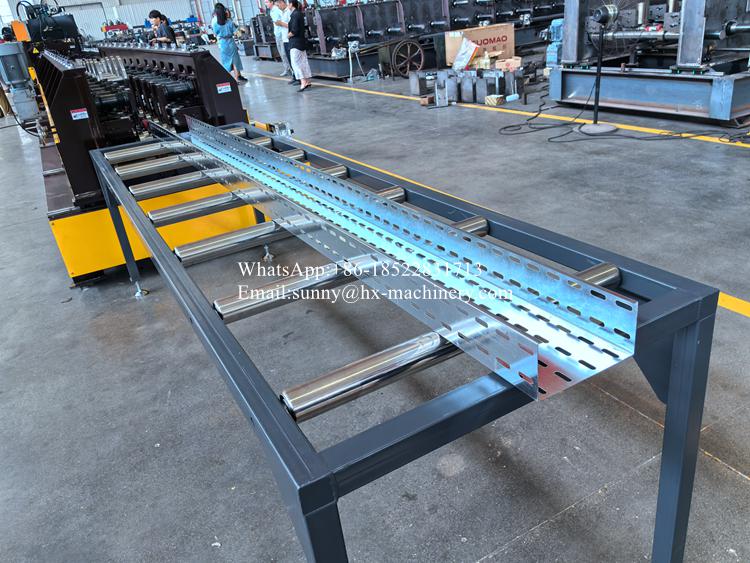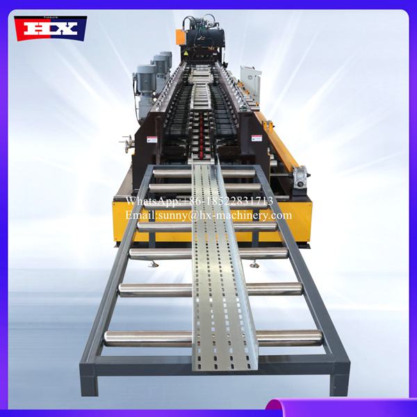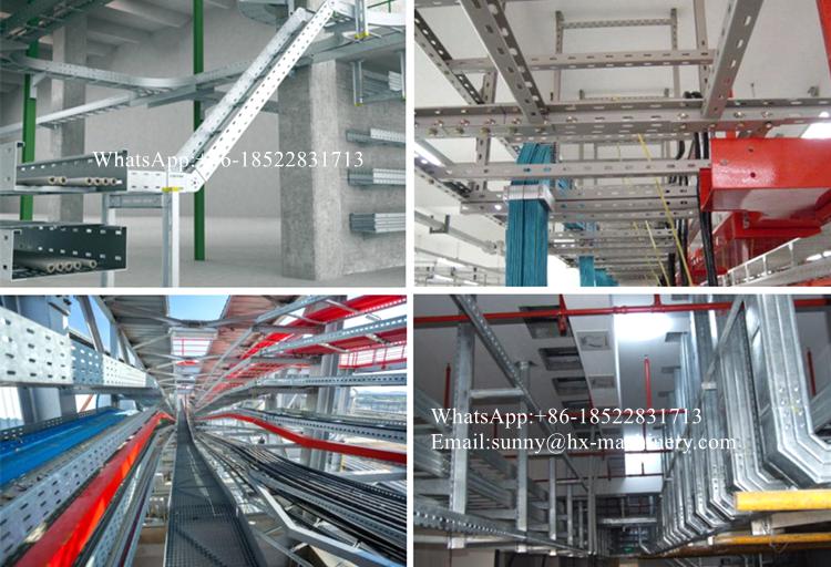 Cable tray making machines,cable tray roll forming machine,Cable Tray Production Line from TIANJIN HAIXING machinery factory make different sizes of cable tray, for example cable tray width from 100-600mm, height from 50-100mm. it is easy to change size by moving whole line rollers and cut blade positions.