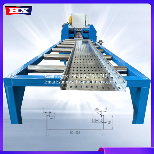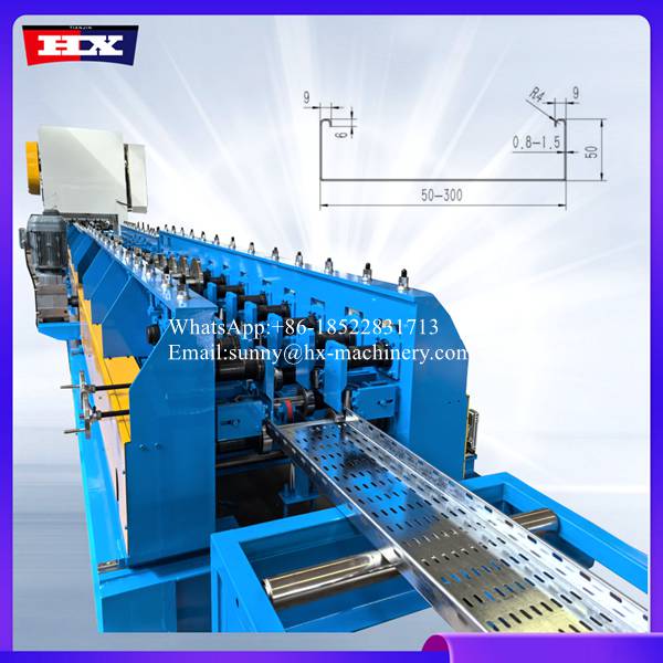 Cable tray roll former punching hole machine are reasonable.Cable tray forming machine belong to continuous roll forming: Through multiple passes (typically 10-20 or more) through forming rollers, coiled material (such as galvanized sheet or stainless steel) is gradually and continuously bent into the designed bridge cross-sectional shape (such as stepped, trough, or tray-shaped). This process is uninterrupted, with production speeds reaching 10-30 meters per minute, significantly improving production efficiency and reducing labor costs.
