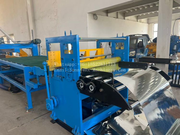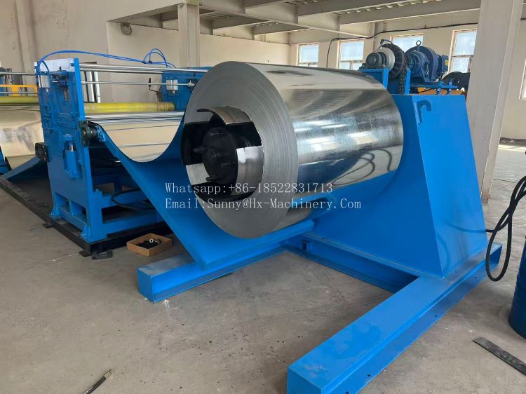This steel coil cut to length line divided into several parts, such as the uncoiling section, leveling section, cutting section, conveying section, receiving section and this machine including slitting section. And here are some details and photos of machine parts:
