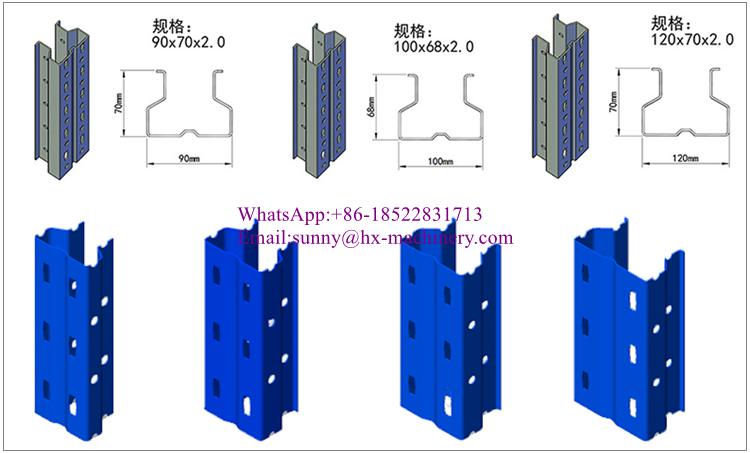 Pallet rack roll forming machine is a continuous, automated production line that manufactures the key structural components of warehouse storage systems—primarily upright columns and support beams—through a cold roll forming process.It transforms high-strength steel coils into precise, durable profiles with consistent cross-sections.