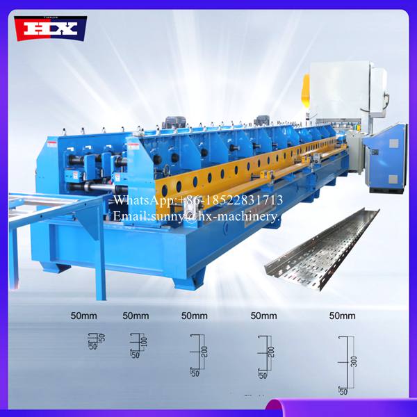 Perforated cable tray roll forming machine is an automated production line for metal processing. Its core working principle is to continuously feed metal coils (usually steel or aluminum strips) into a series of pairs of customized forming rollers. Each pair of rollers performs small, progressive bending on the metal, ultimately processing the straight metal strip continuously and at high speed into the desired specific cross-sectional shape (in this case, the cross-section of a perforated cable tray).