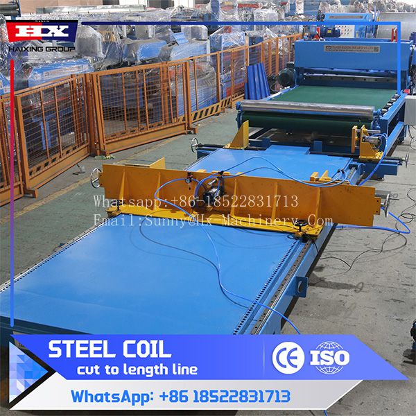 This steel coil cut to length line divided into several parts, such as the uncoiling section, leveling section, cutting section, conveying section, receiving section and this machine including slitting section. And here are some details and photos of machine parts: