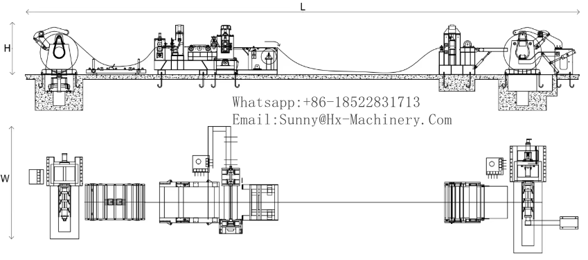 This line mainly includes: hydraulic uncoiler, slitter and cutter, conveyor, hydraulic recoiler, or with roll forming machine,etc.