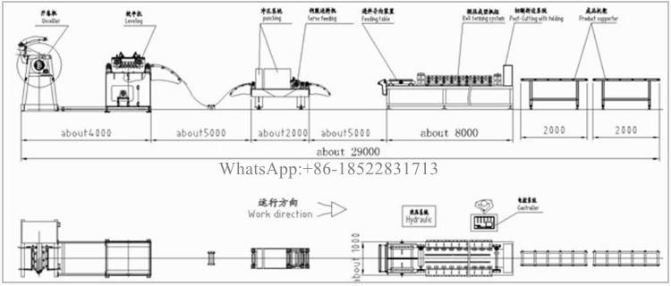Uncoiling – high precision punch feeder – high speed punching press (including die)- Precision col rolling forming machine – CNC shear -receiving rack.