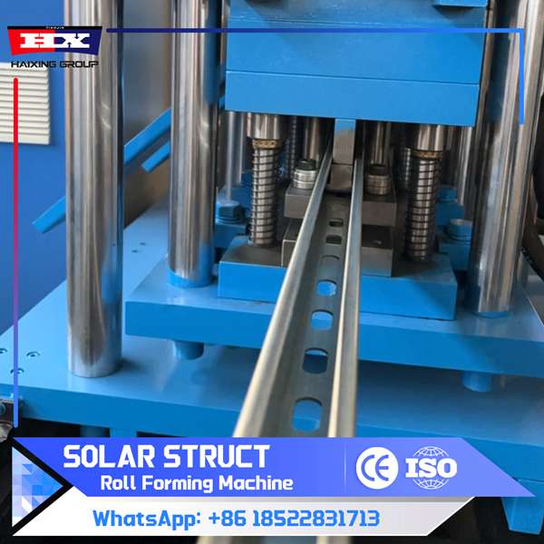 Solar structure machine unistrut c channel roll forming machine are production begins with coils of sheet metal (typically pre-galvanized steel or aluminum).The material is fed through a series of tandem rolling stations, where each set of precision rollers gradually bends and forms the metal into the final C-channel profile without removing any material. Key steps include: