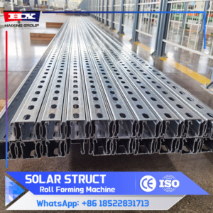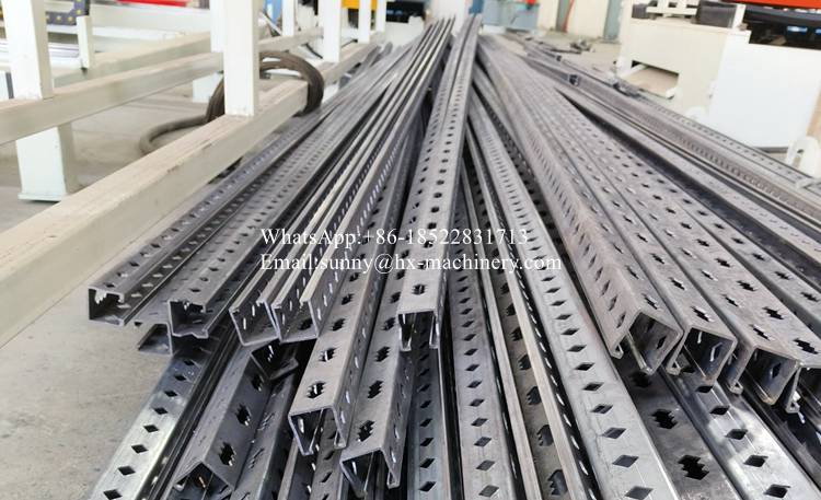 Unistrut c channel roll forming machine is high-efficiency forming equipment for producing strut channels.It can be used to form different sizes of strut channels with a width of 41-72 mm, adjustable according to different requirements. It is designed with a hydraulic decoiler and a forming speed of 10-15m/min.The weight of the machine is 6T, and it is characterised by high accuracy, high quality and high efficiency.