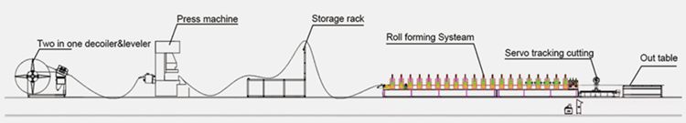 This strut channel roll forming machine line can roll steel products with a maximum thickness of 2.0mm, and can produce steel products with size 41*21/41*41mm/41*52mm,thickness range 1.5(±0.03)~2.5(±0.03) mm